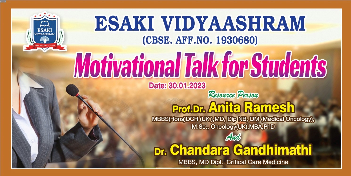 Motivational Talk for students at Esaki Vidyaashram by Prof. Dr. Anita Ramesh, MBBS(Hons)DCH(UK),MD